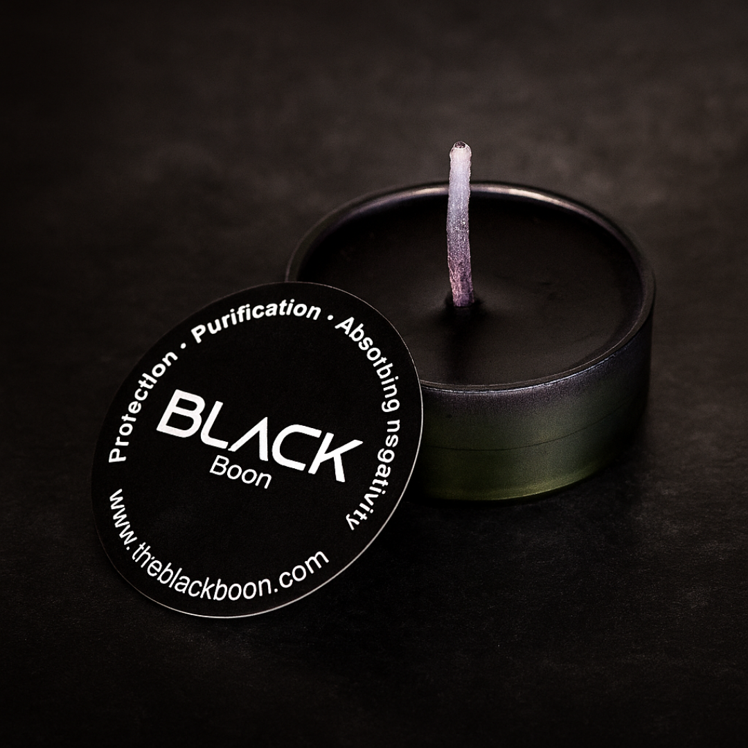 Need a solution to negativity? Our Black Boon Tea Light Candles are not just candles—they're your defense against unwanted energies. Designed for elite purification, they absorb negativity while adding a touch of sophistication to your space.